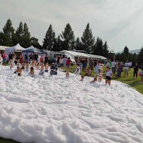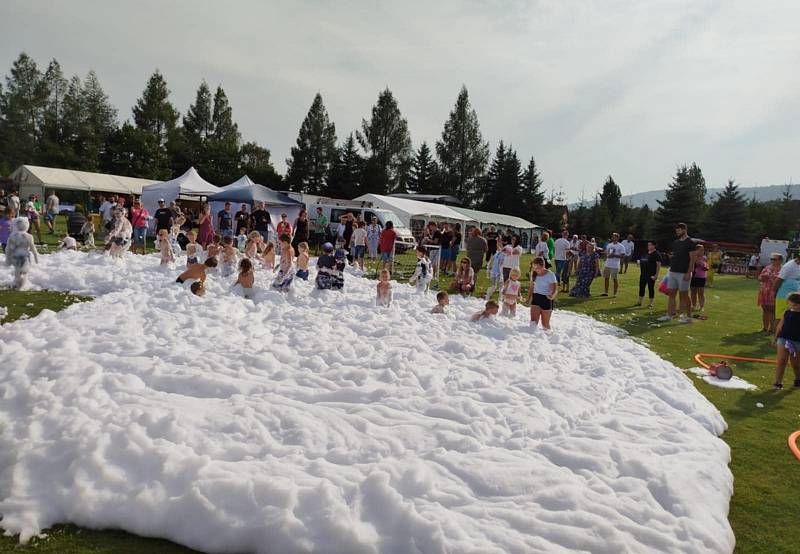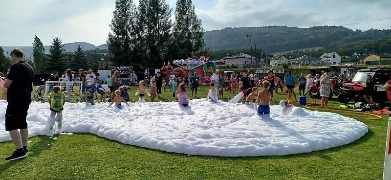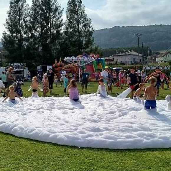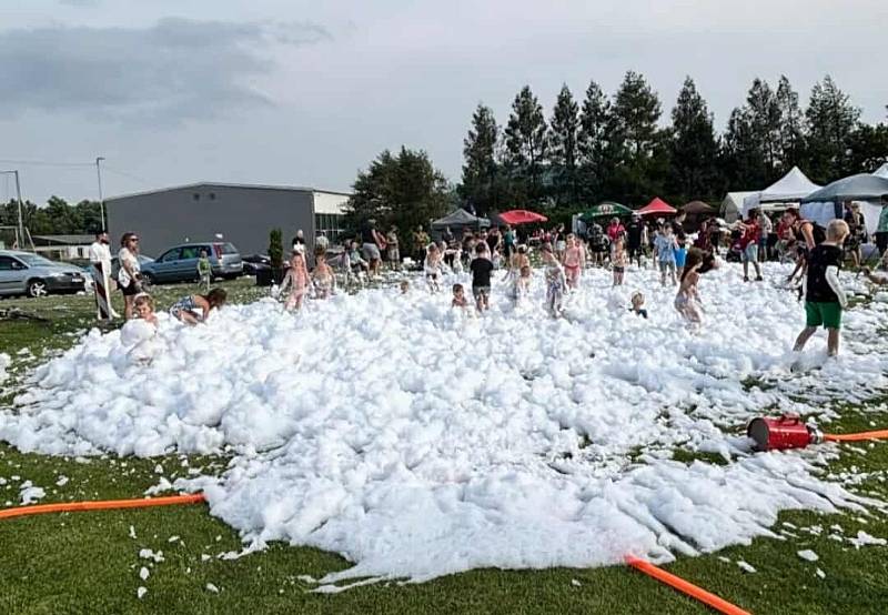 Počasí nám přálo – i když chvíli foukalo, brzy se vyjasnilo a my jsme mohli dětem vykouzlit úsměv na tváři pěnovou show. V pěně se vyřádily nejen děti, ale i dospělí, a smích se ozýval široko daleko.